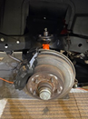 This is a fairly straight forward project. My first step was to put the car up on jack stands and remove the front wheels. I then removed the brake caliper by removing the two 5/8 bolts that secure it. Important, don’t let the caliper hang by the brake line.